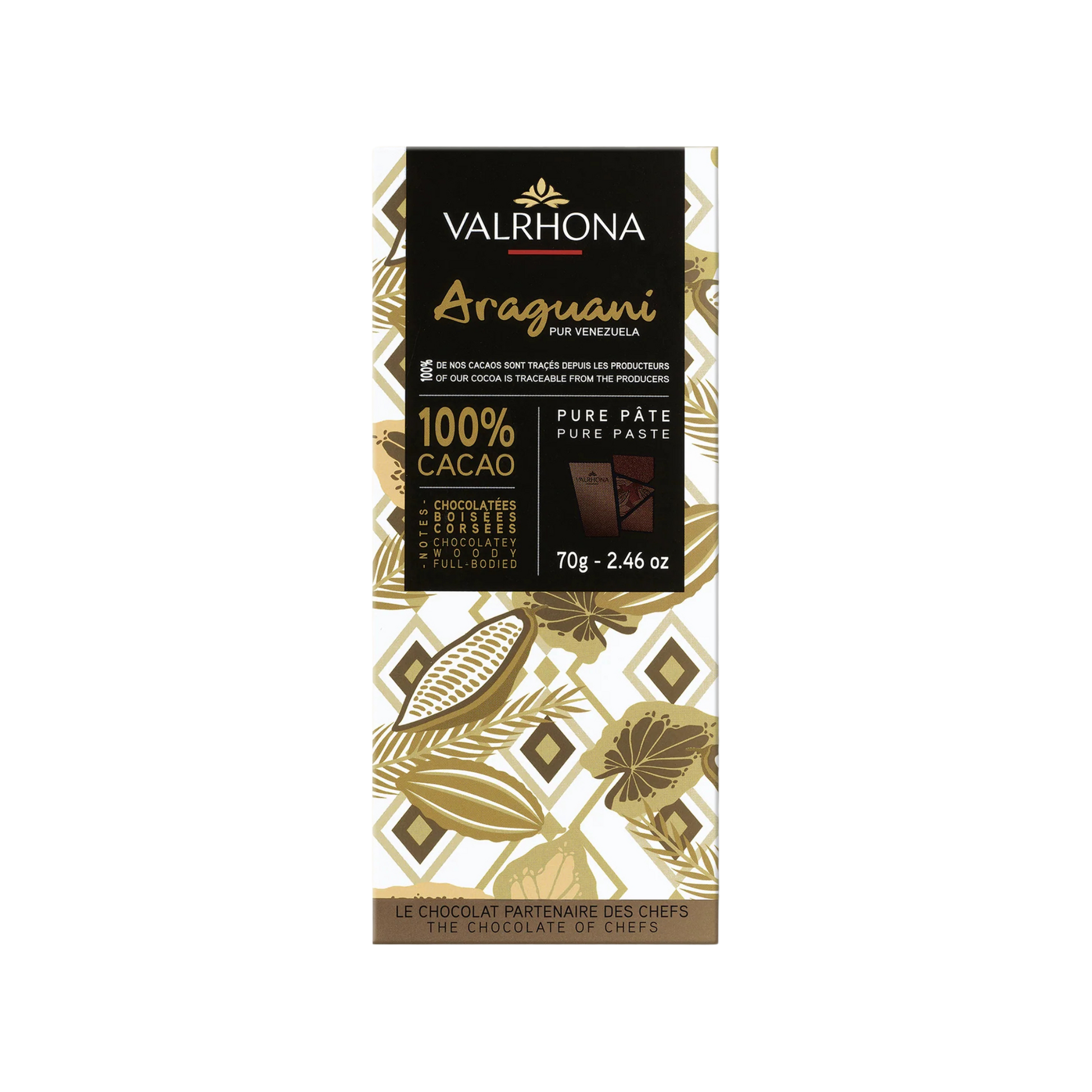 Araguani, en fullfylt mørk sjokolade fra Valrhona, fremhever de fineste kakaobønnene fra Sur del Lago-regionen i Venezuela. Med subtile vaniljetoner, lette tretoner og en touch av bitterhet, byr denne Single Origin-sjokoladen på en elegant og kompleks smaksreise gjennom Venezuelas fjell, skoger og saltvannsinnsjøer.