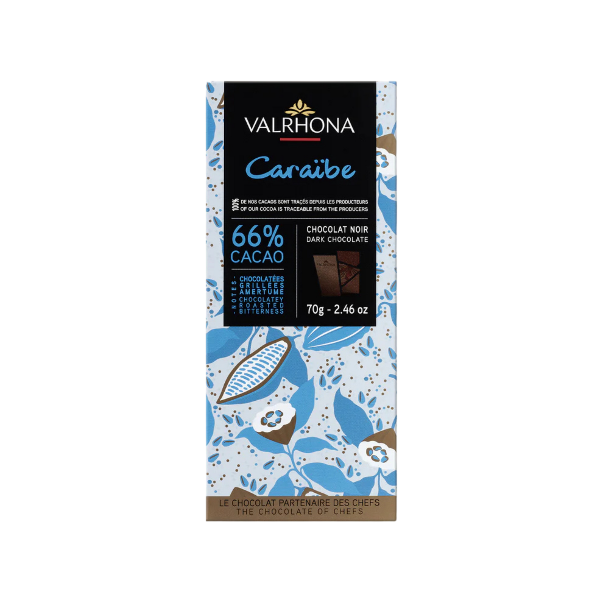 Med sin runde fylde og silkemyke balanse er Caraïbe 66 % den mest allsidige mørksjokoladen fra Valrhona - en ekte klassiker som begeistrer både kjennere og nybegynnere. Elsket for sitt tilgjengelige aromatiske uttrykk, er den et perfekt valg til alt fra raffinerte desserter til enkle øyeblikk av nytelse.
