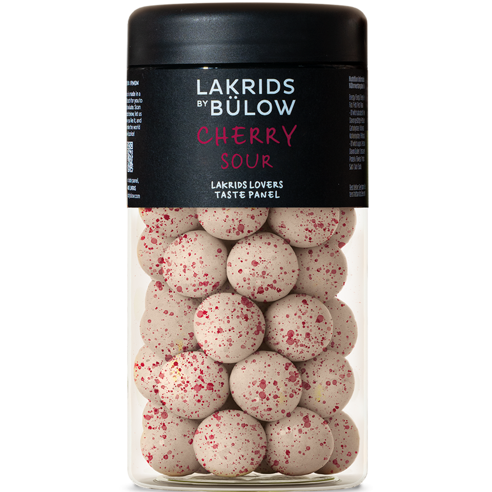 CHERRY SOUR kombinerer søt lakris, omsluttet av kremet hvit sjokolade med sprø kirsebærgranulat. Den lette knasen gir en herlig kontrast til den fløyelsmyke teksturen. Sødmen fra solmodne kirsebær og den friske syren fra mørke surkirsebær smelter sammen til en harmonisk smaksopplevelse, som vekker minner om barndommens bærplukking på solfylte dager.