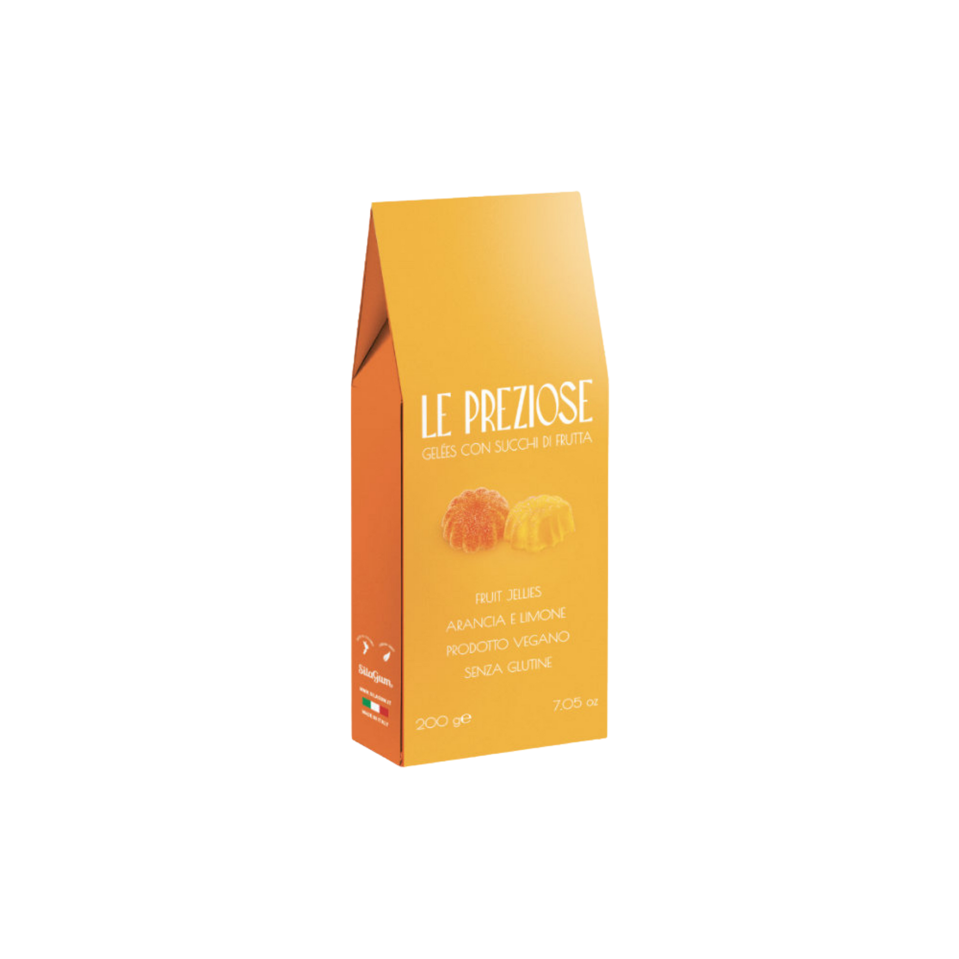 Opplev en liten bit av italiensk eleganse med Silagum Le Preziose, luksuriøse gelefrukter med intens smak av appelsin og sitron. Hver bit er silkemyk, fylt med fruktig sødme og laget for å friste sansene - perfekt å nyte som en liten luksus når som helst, alene eller sammen med gode venner. Små mesterverk av smak, i hver gelebit.