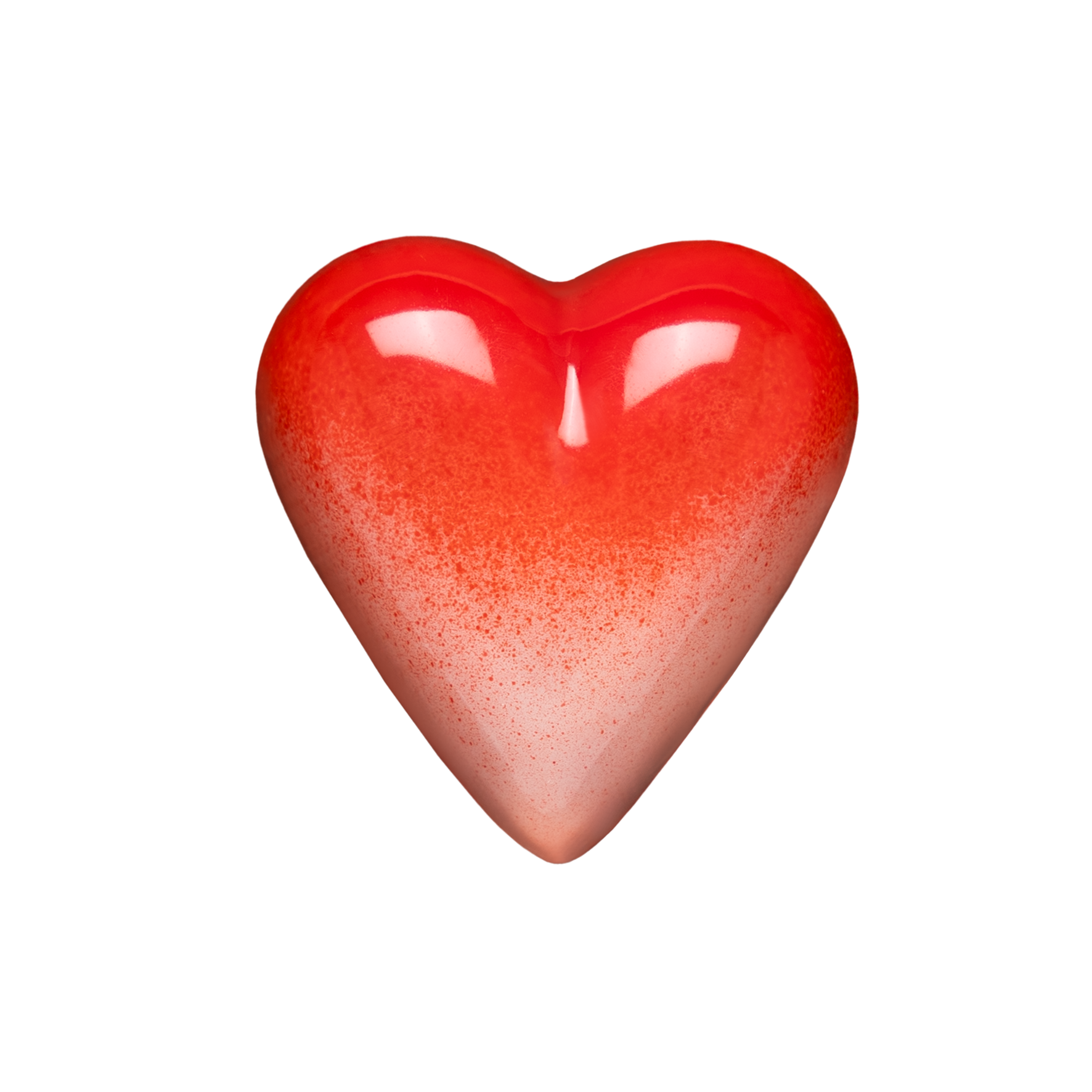 Jordbærfyll laget med mørk sjokolade avsluttet med et skall av hvit sjokolade