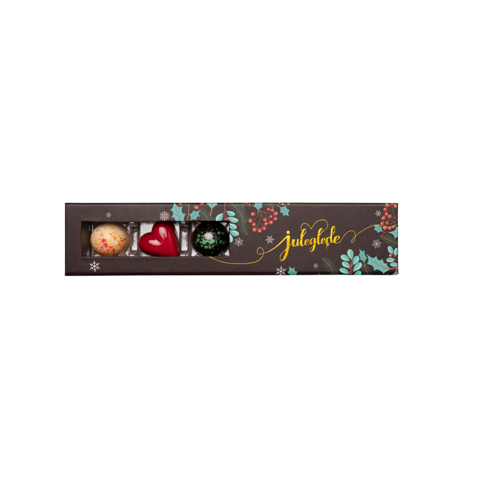 Inneholder 6 håndlagde konfektbiter - en harmonisk balanse av tradisjon og nytelse, pakket inn i et snev av julens magi.