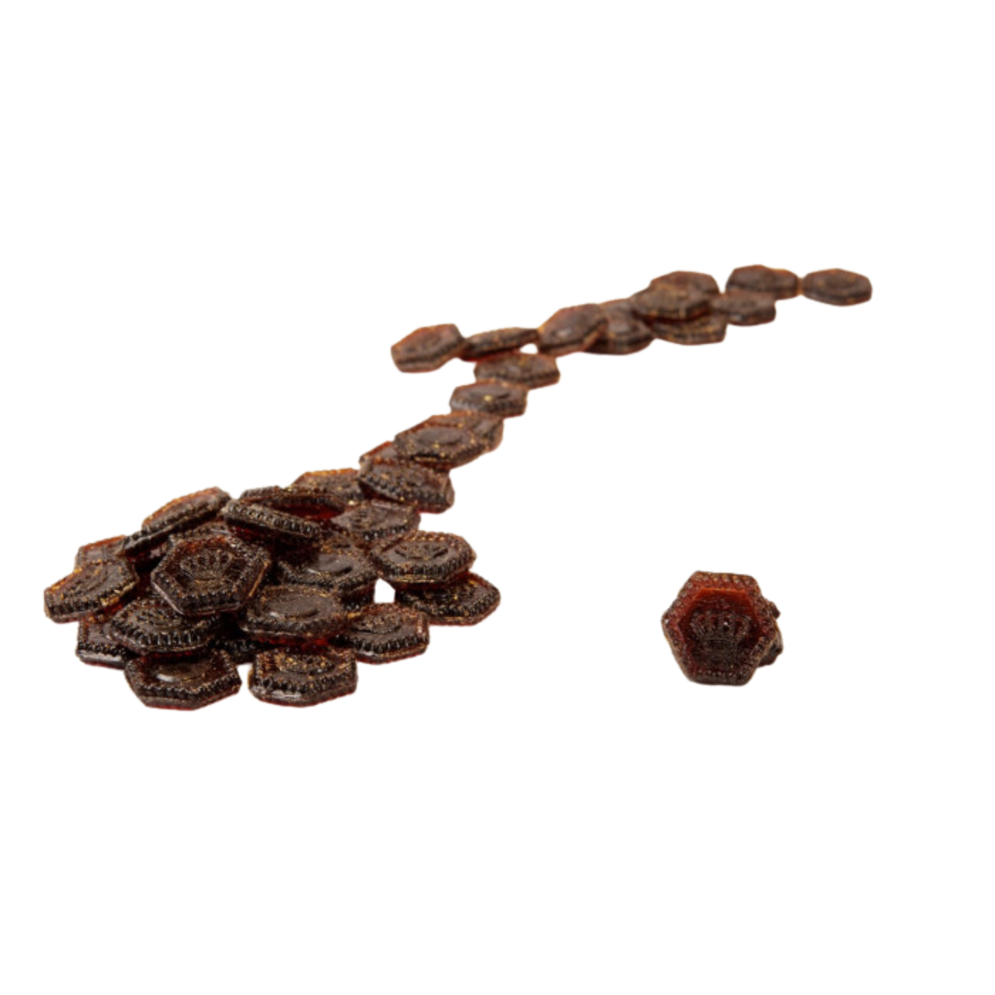 Små drops med fyldig, karakteristisk lakrissmak som kombinerer sødme og krydret dybde. Den myke konsistensen smelter lett på tungen og gir en klassisk, tidløs lakrissopplevelse.