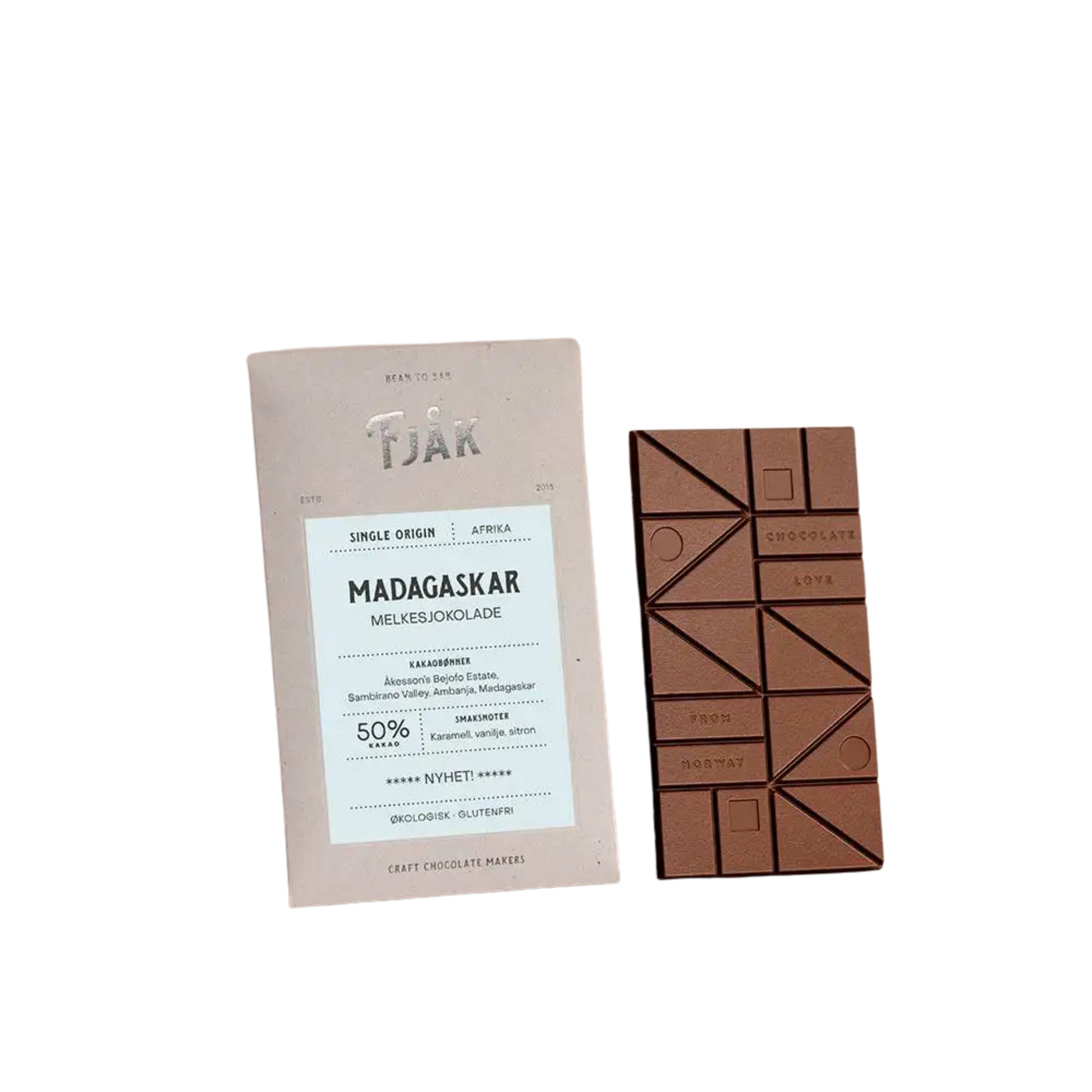 Aromatisk mørk melkesjokolade med en karakteristisk smak av sitrus og deilig karamell.