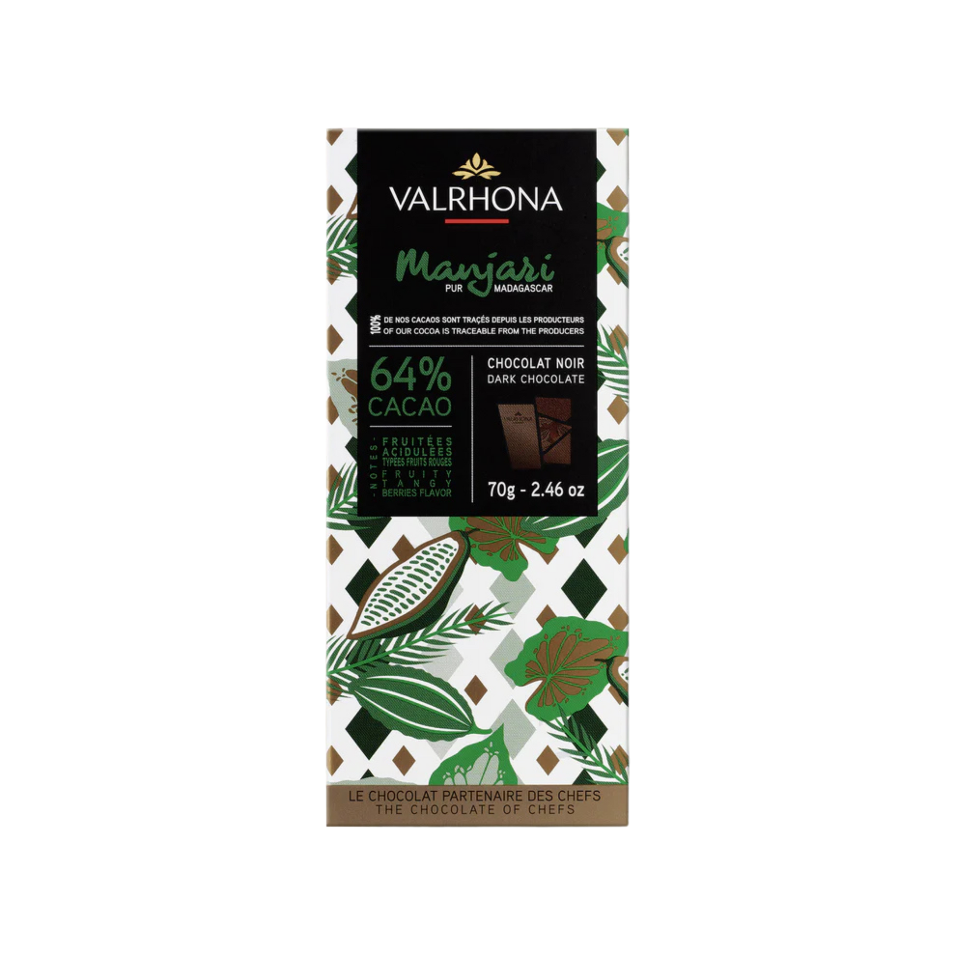 Elsker du mørk sjokolade med friske, fruktige noter? Manjari 64 % er Valrhonas ikoniske Grand Cru fra Madagaskar, kjent for sin syrlige signatur og livlige aromatiske dybde.
