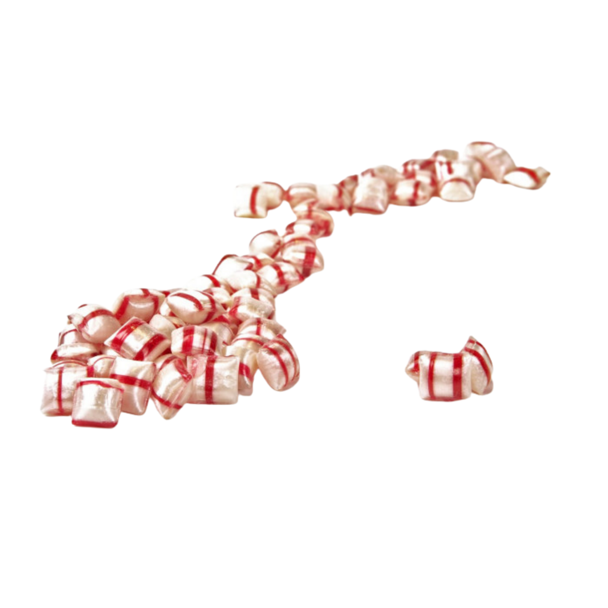 Små, myke drops med tydelig peppermynte- eller polkasmak, som kombinerer friskhet og sødme i perfekt balanse. Den jevne, myke konsistensen smelter lett på tungen og gir en ren, forfriskende opplevelse.
