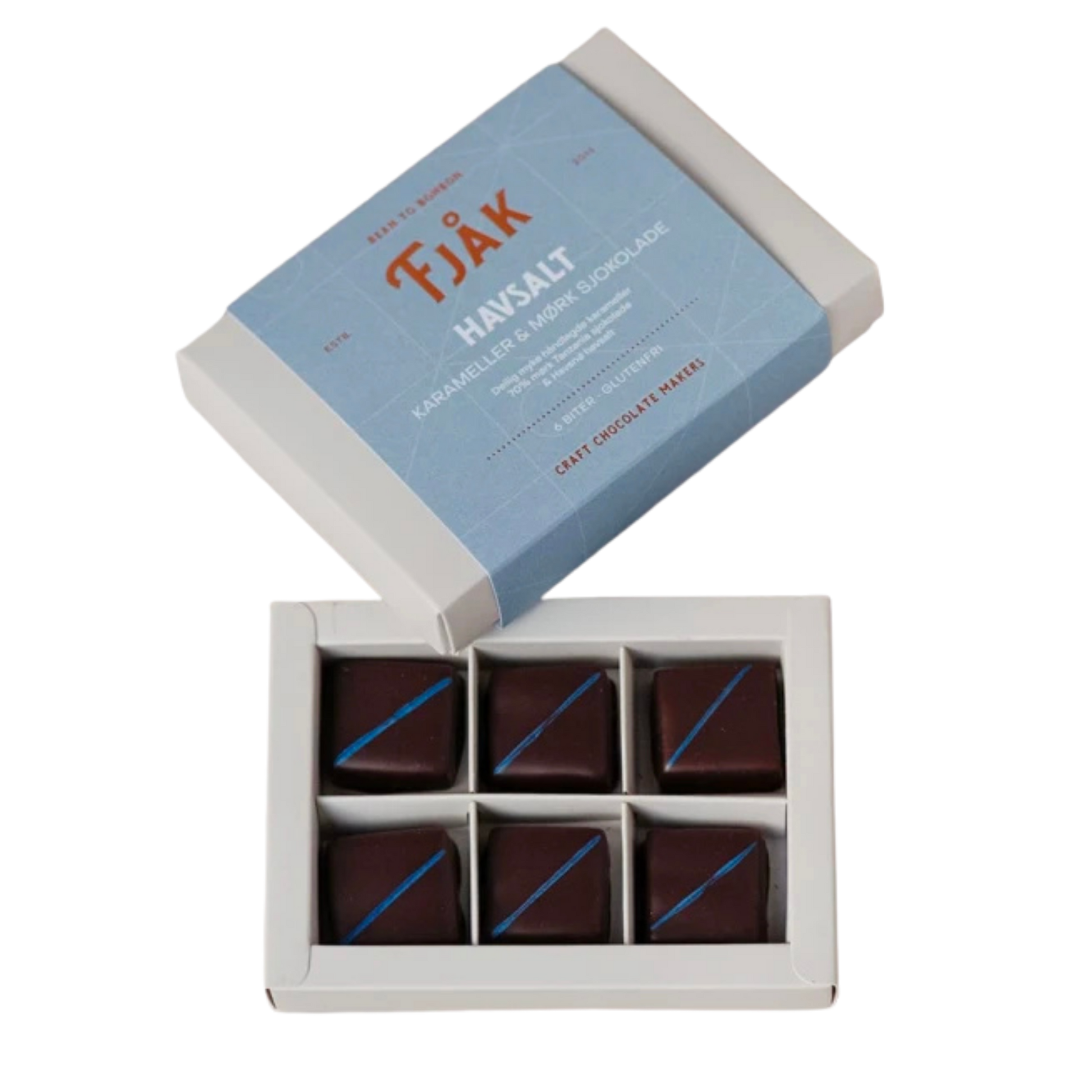 Karamell og sjokolade i perfekt harmoni. Fjåk sine salt karameller kombinerer kremet, søt karamell med et diskret touch av havsalt, alt omsluttet av et fyldig sjokoladetrekk. Hver bit smelter sakte, og gir en rik, rund og balansert smaksopplevelse med både sødme og et elegant hint av salt. En luksuriøs liten godbit som frister både som gave og til egne små øyeblikk av nytelse.