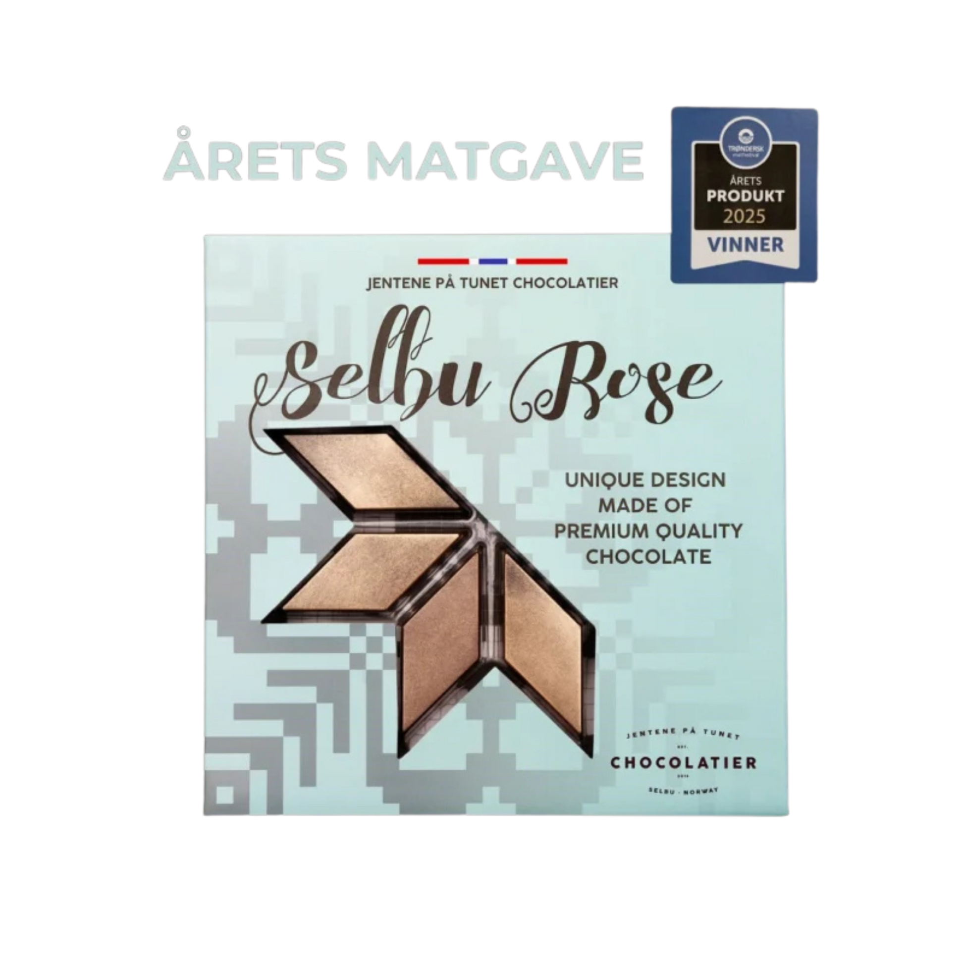 Dette er vår smakfulle hyllest til det ikoniske håndverket fra Selbu – som hele Norge elsker! Sjokoladen er formet som den tradisjonsrike 8-bladrosa og fylt med to av våre mest populære smaker: folkefavoritten Karamellkos og Solbærdugg, som vant pris i International Chocolate Awards 2017.