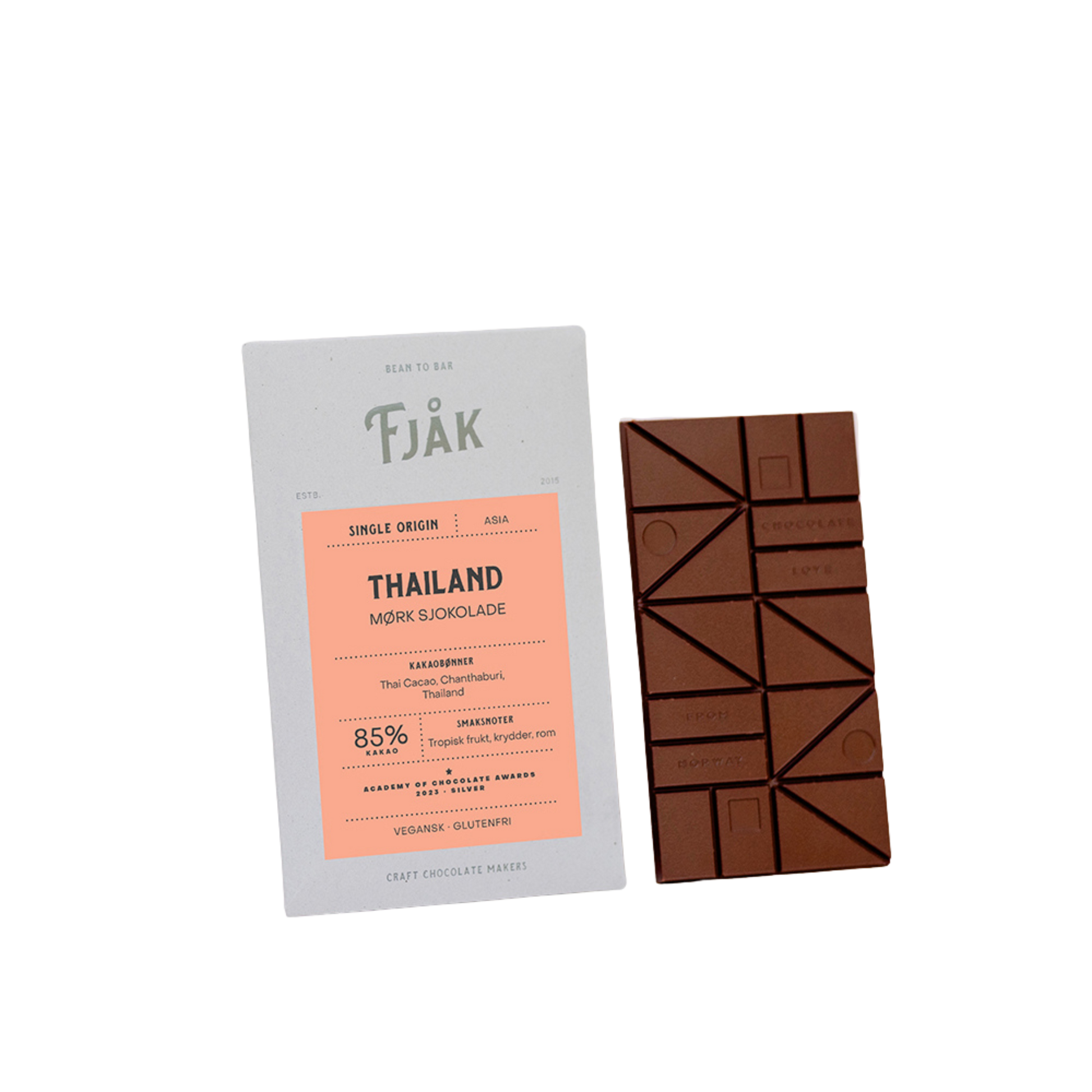 Mørk sjokolade med smaksnoter av tropisk frukt, krydder og rom.